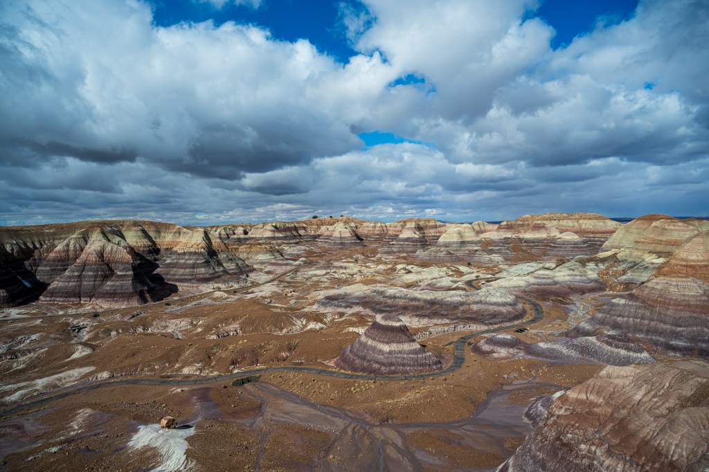 Many people think of other national parks in Arizona to visit, but I highly recommend visiting the Petrified Forest. You can enter the north end of the park, just off I-40. There is an excellent loop road that you drive upon with many stops along with way to see the magnificent views.
