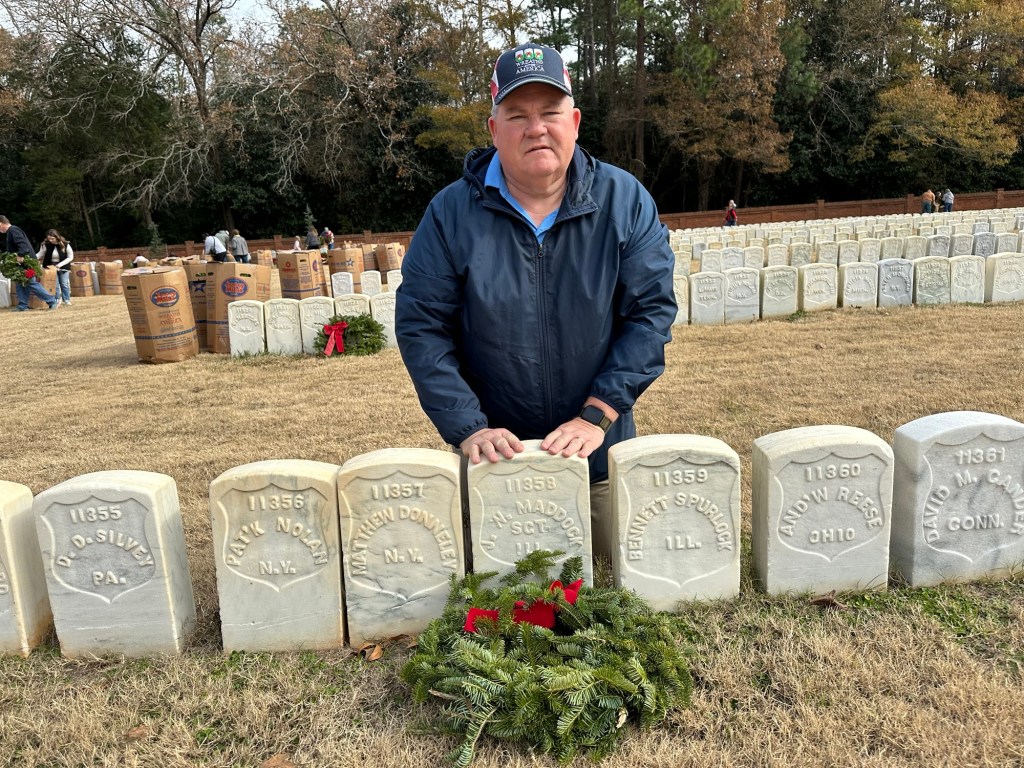A couple of weeks ago I stopped at Andersonville national Cemetery on December 14. That was the day that Wreathes Across America was putting a wreath on each veterans headstone.