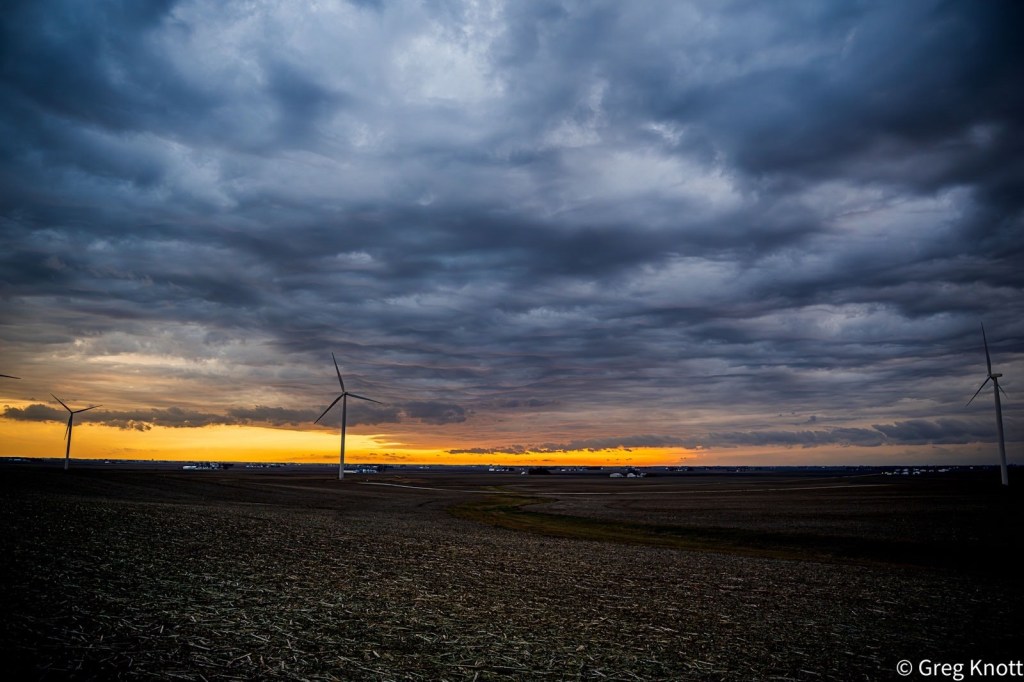 This is from the highest point in Champaign County, Illinois. I often come to this spot because you can see for 20 miles or more. On this particular day it was near sunset and the clouds from a storm front were quickly rolling in.